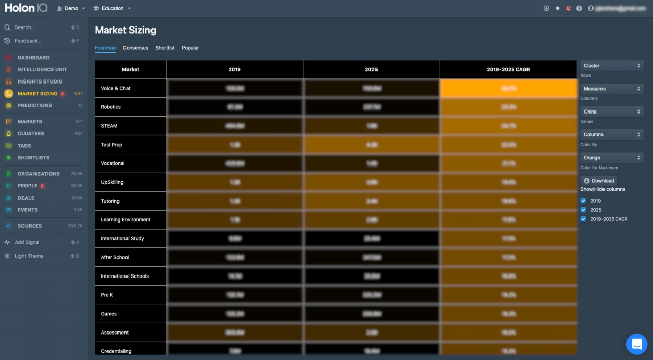 Driven by Higher Education tuition deflation, combined with faster/cheaper credible alternatives and digitization driving a lower administrative cost base across all sectors, HolonIQ has revised our Global Education and Training market size, downgrading total spending by ~$500B in 2025 compared with HolonIQ’s Pre-COVID outlook. We now expect the global education and training market to reach $7.3T in total expenditure by 2025 (all products and services and including digital).